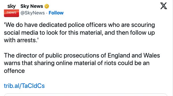 Sky News clarified that “sharing online material of riots could be an offence.”