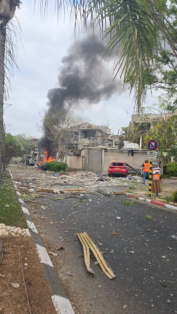 Below, an image of one missile impact at Tel Aviv Yanyor: