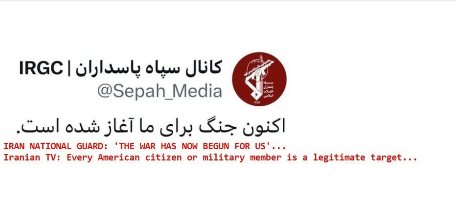 The Iran media, last night, published this from the Iran National Guard, as seen on DrudgeReport.com: