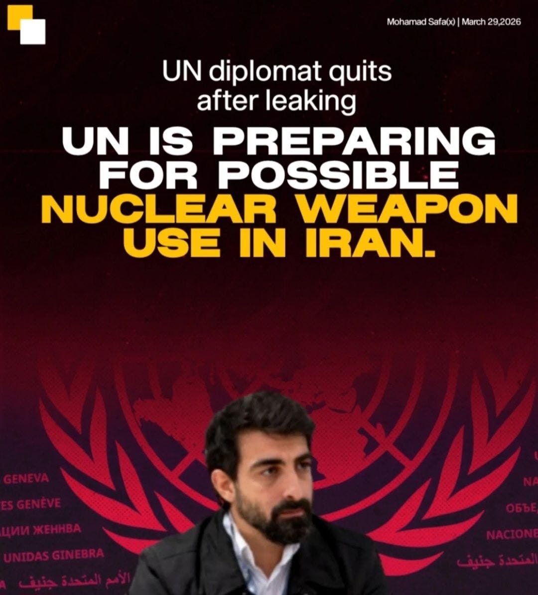 The strongest evidence yet that the Iran war may be ended by launching nuclear weapons into the country by Israel and the United States was produced by a permanent member of the UN and Executive Director of the Patriotic Vision Organization for the past 12 years, Mohamad Safa, who resigned from his position on Friday, so that he could leak information about an alleged UN plan to launch nuclear weapons into Iran.