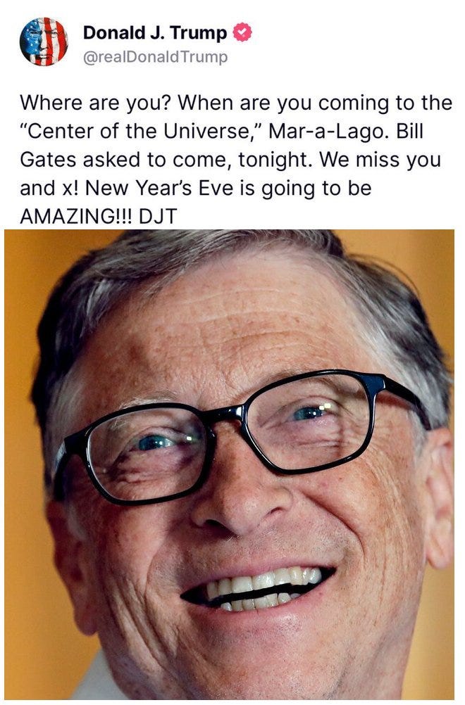 President Trump just announced that Bill Gates has requested a meeting tonight at Mar-a-Lago.