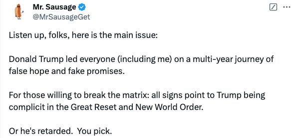 Mr. Sausage is prescient. I'm not on X. If anyone is, please let him know that he is 100% correct.