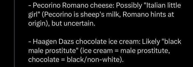 Epstein code words so far, these are just guesses and open to changing with new info.