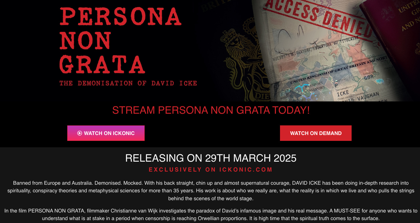 David Icke joins us together with filmmaker Christianne Van Wijk to talk about the new movie PERSONA NON GRATA about David's unprecedented ban from almost all European and many other countries of the world.