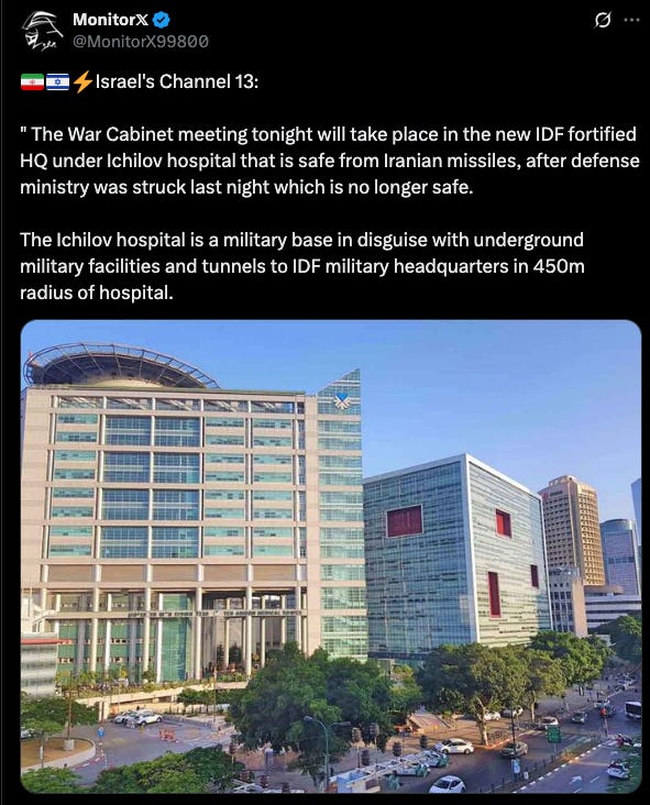 There was a military command centre under Ichilov hospital struck by Iran last night