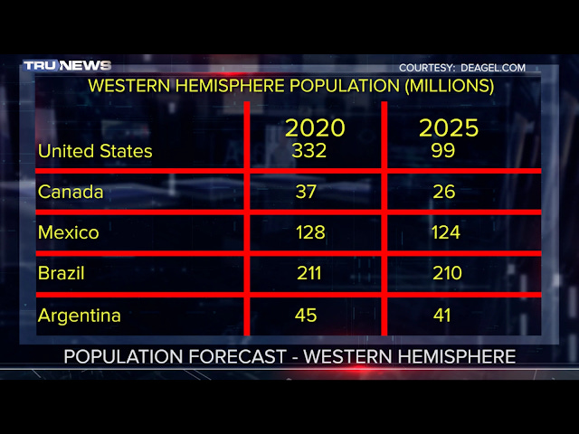 Today on TruNews, we discuss a new prediction by the publishers of military-analyst outlet Deagel.com, forecasting that 233 million Americans will leave or be killed by 2025, and societal collapse, and nuclear and biological war with Russia and China will cause this dramatic end to the United States as we know it.