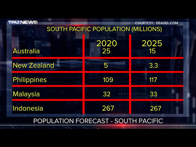While predicting that Australia would see its population decline by 34.6% by the year 2025.