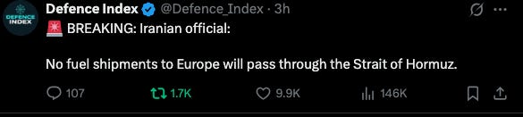 It's all theatre in order to crash the world economy (what's left of it). Big Bad USA bombing Iran in order to end the "nuclear threat," what a joke. They are grandstanding that they are bombing Iran into "submission and regime change," when they were responsible for the Shiite Islamic fundamentalist takeover of Iran in the first place. If the USA were as powerful as they pretend to be, they could keep the Strait of Hormuz open by military/naval action. They don't want to. Zionist Jews want world conflaguration in order to prepare the world for the Jewish Messiah. This is their game plan and Trump and a large portion of the US government in key positions have sold out to Israel. Many in the US government carry both US and Israeli passports. Trump, even though he has pretended not to be lately, has always been Israel's bitch. Plus, can anyone remember the last time the US won a war? Hey, maybe your new shiny, digital ID will allow you to spend your Central Bank Digital Currency on your monthly food and petrol ration.
