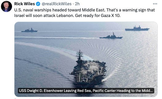 Israeli TV I-24 News is reporting this as well, and gleefully saying "It is reminiscent of the Gulf of Tonkin incident" which got the US into the Vietnam war, and will get the US into the coming Israel-Hezbollah War."