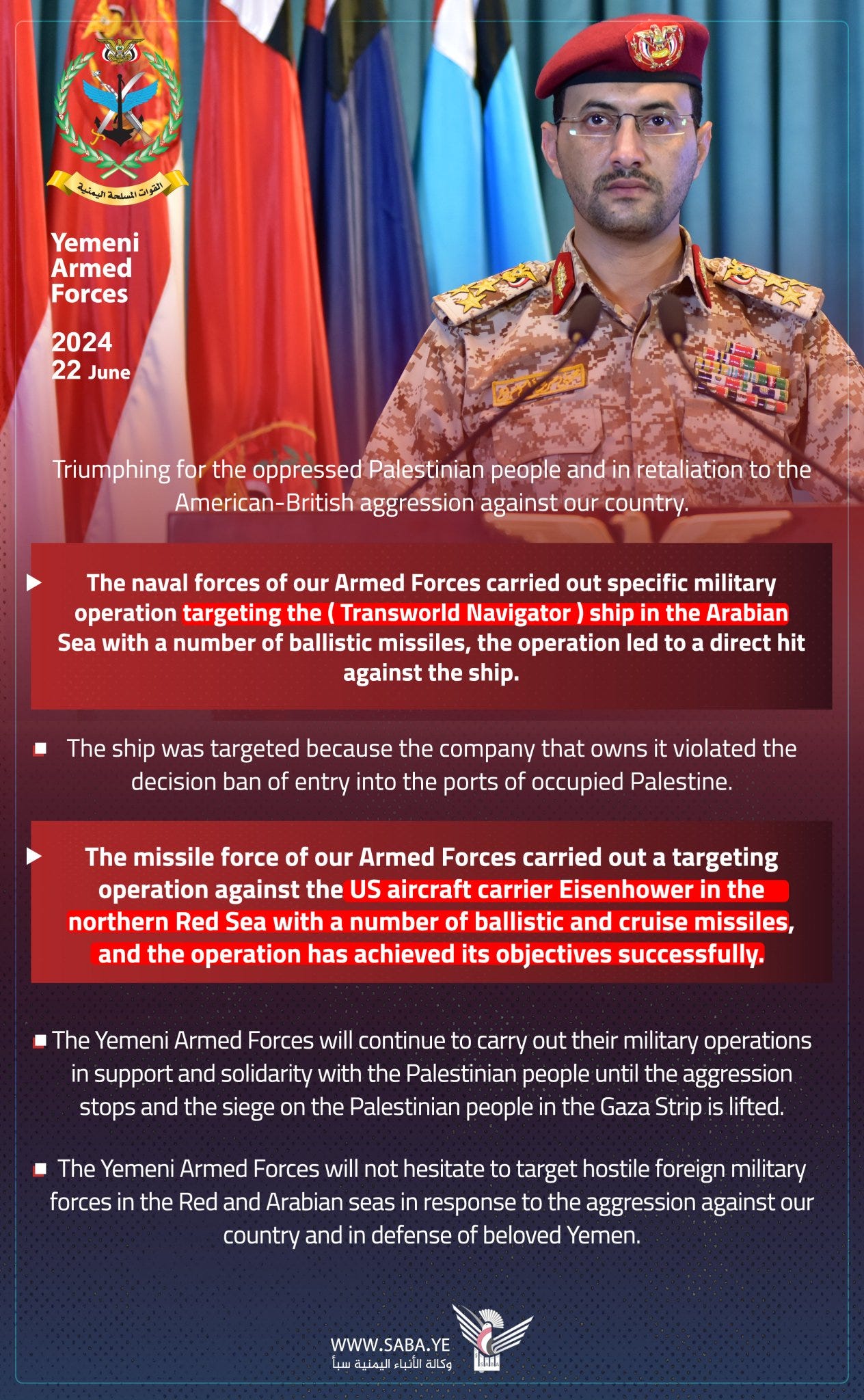 YEMEN CLAIMS IT HAS SUCCESSFULLY STRUCK THE USS EISENHOWER IN NORTHERN RED SEA