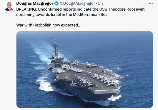 The USS Theodore Roosevelt is steaming towards Israel;