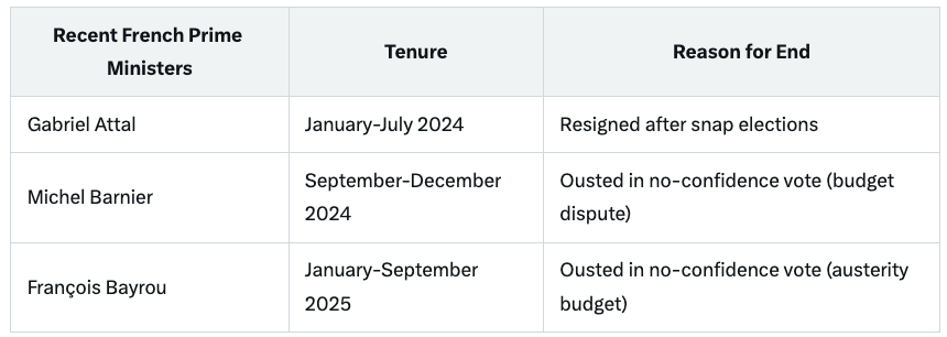 Economic impact: French bond yields have risen above those of Spain, Portugal, and Greece, signaling investor concerns. A potential sovereign debt downgrade looms, and stocks in banks like BNP Paribas fell 5-10%. Analysts warn of IMF intervention risks if instability persists.