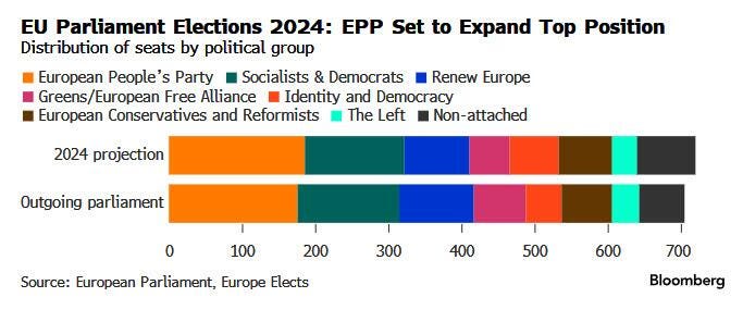 As the WSJ notes, "Sunday’s results point to trouble for the EU leadership’s ability to pursue its environmental goals and indicate that pressure will mount to tighten migration rules under right-wing pressure. The vote is also likely to give a greater voice—at least within the parliament—to nationalist and left-wing critics of EU support for Ukraine."