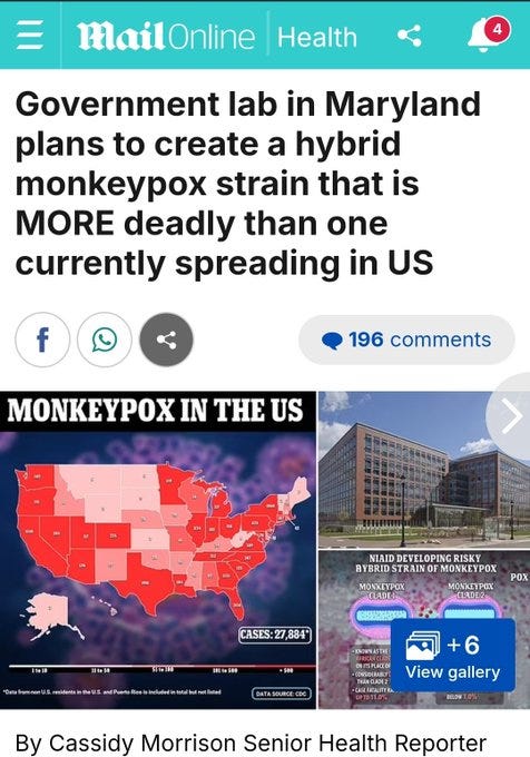 Government lab in Maryland plans to create a hybrid monkeypox strain that is MORE deadly than one currently spreading in US