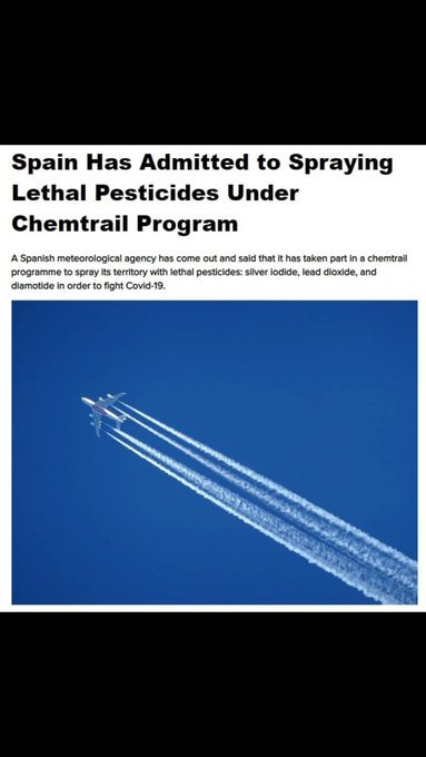 During the strategically-planned covid-19 “state of emergency,” the United Nations (UN) authorized the Spanish government to spray lethal chemtrails from the skies. On April 16, 2020, the Spanish government quietly admitted that they authorized the military to spray biocides on the entire population. This population-wide medical experiment was carried out under the cover of a “state of emergency for the management of the health crisis situation caused by Covid-19.” This desperate, yet well-devised plan violates multiple counts of the Nuremberg Code -- a human rights and medical ethics treaty that is not being enforced in any capacity.