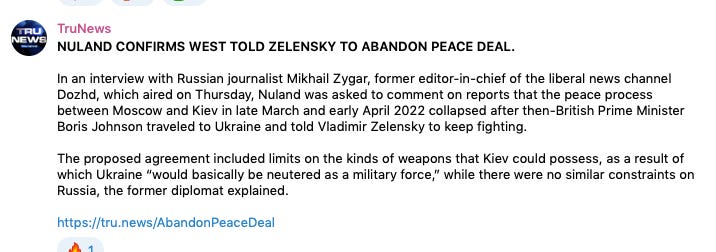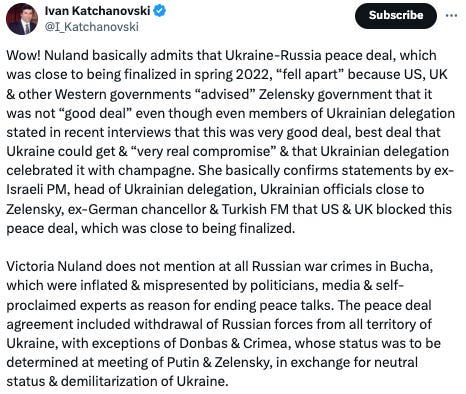 VICTORIA NULAND CONFIRMS WEST TOLD ZELENSKY TO ABANDON PEACE DEAL.