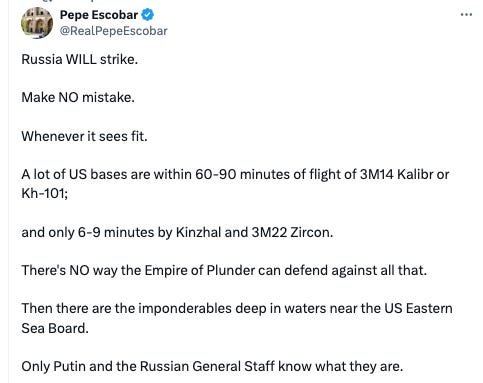 Scott Ritter talked about this being a NUCLEAR strike and that this will not only destroy America but Russia and the rest of the world as well.