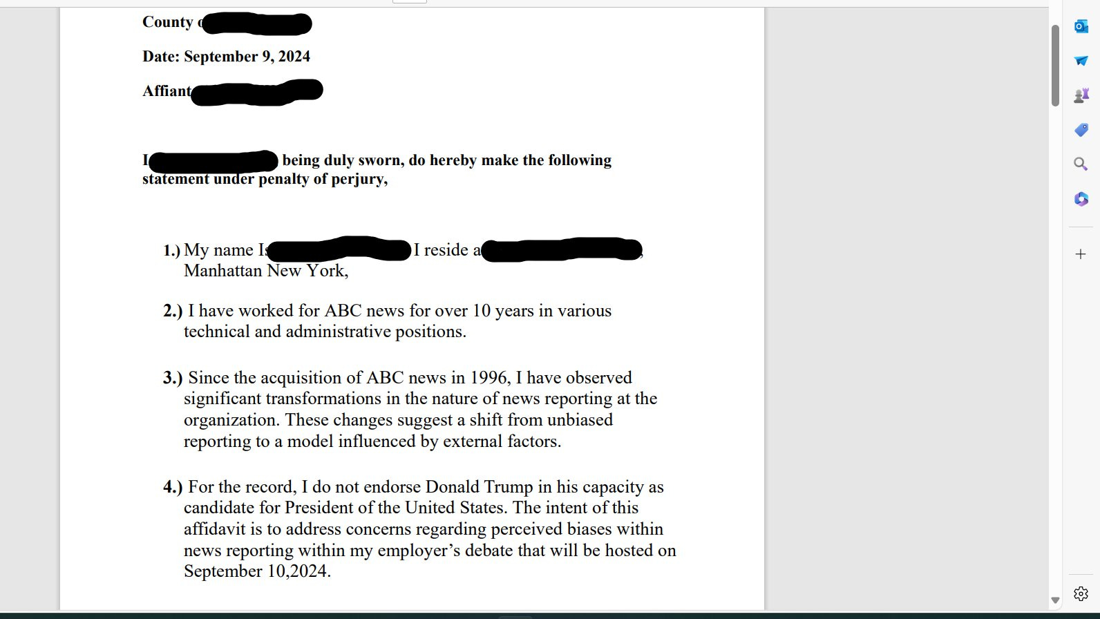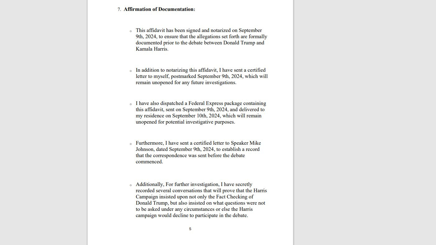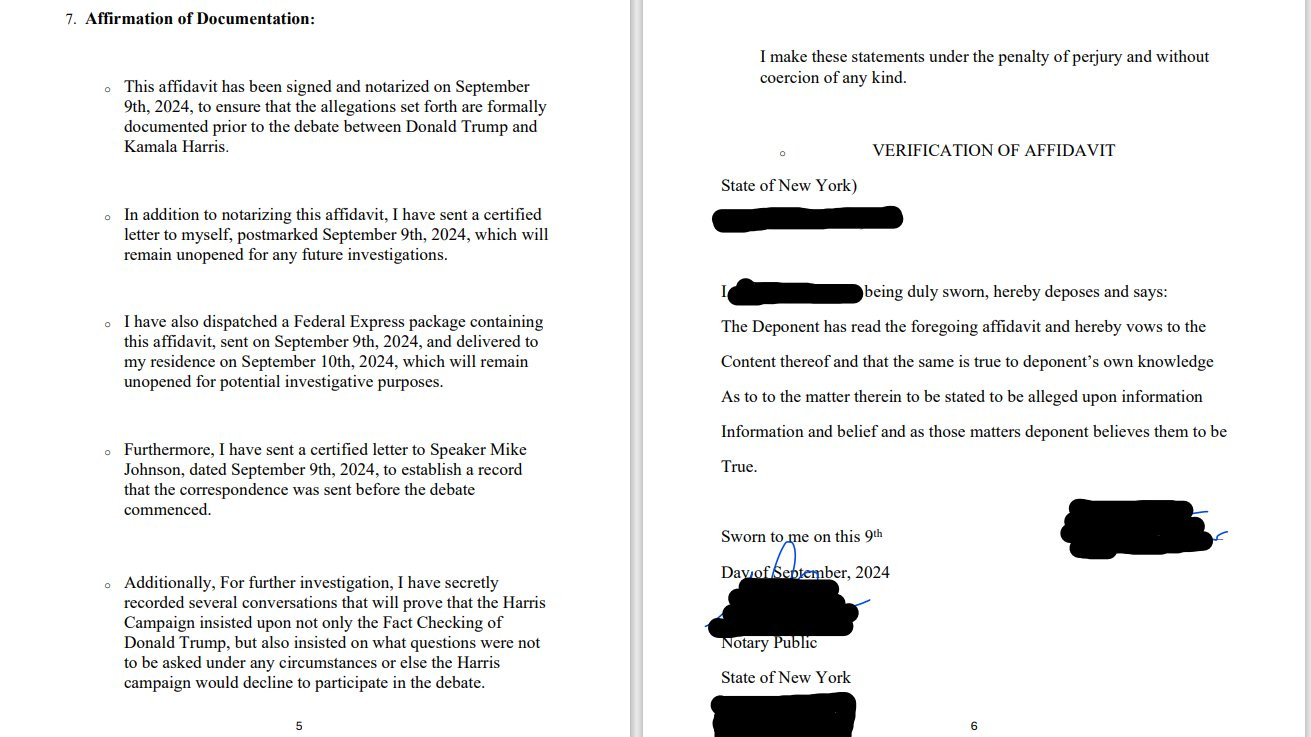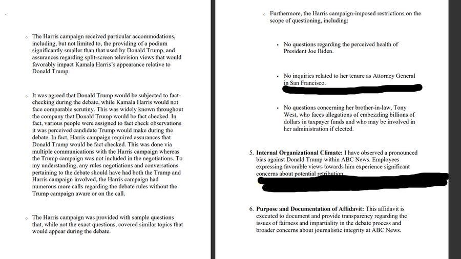 AFFIDAVIT **BEFORE** ABC News "Debate" Between Trump - Harris; ABC ***RIGGED*** THE DEBATE